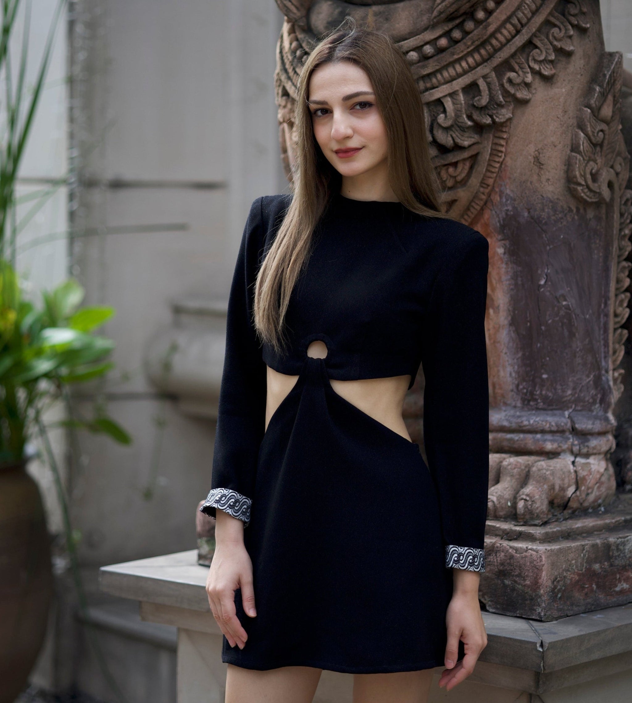 This dress is made with traditional Burmese fabrics paired with luxurious materials. Using Luntaya